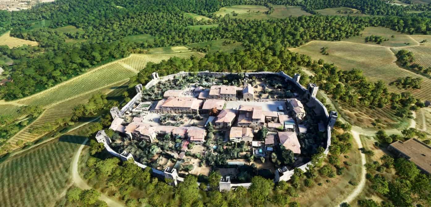 Monteriggioni is a medieval walled town, located on a natural hillock, built by the Sienese in 1214–19 as a front line in their wars against Florence, by assuming command of the Via Cassia running through the Val d’Elsa and Val Staggia to the west.