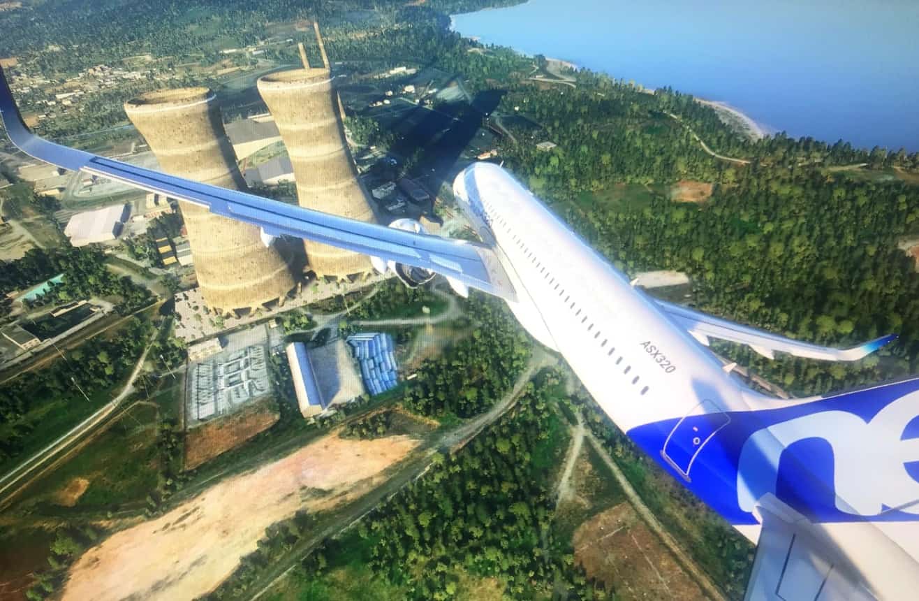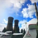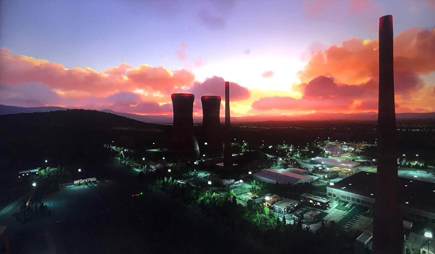 Incluye sus 4 chimeneas destacadas, con toda la iluminacion noctura de la central.