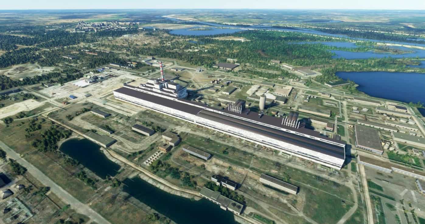 The Chernobyl NPP, pre disaster. Main reactor buildings only, no external buildings.