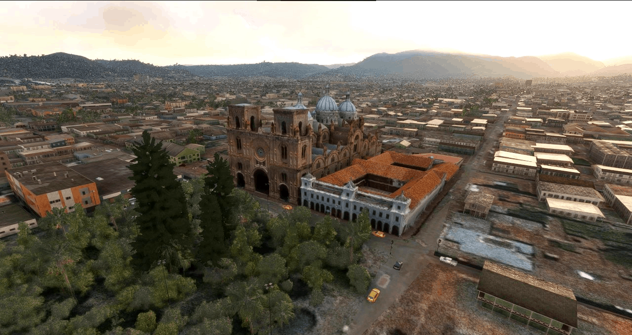 This addon include the Catedral Nueva and Santo Domingo church, some trees were modified in the Parque Calderon to look according to the reality. Modified by 3d models and textures into Blender and added custom lights for those night flights.