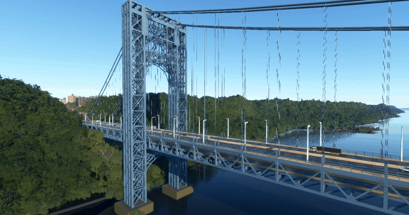 The George Washington Bridge is an extremely important bridge across the Hudson River from New Jersey to Manhattan, New York and is the world’s busiest motor vehicle bridge and part of Interstate 95. It is a huge bridge with a 3500 ft main span, an upper deck with 8 lanes opened in 1931 and a lower deck with 6 lanes opened in 1962. I handcrafted the bridge in Blender.