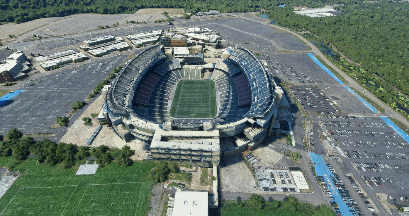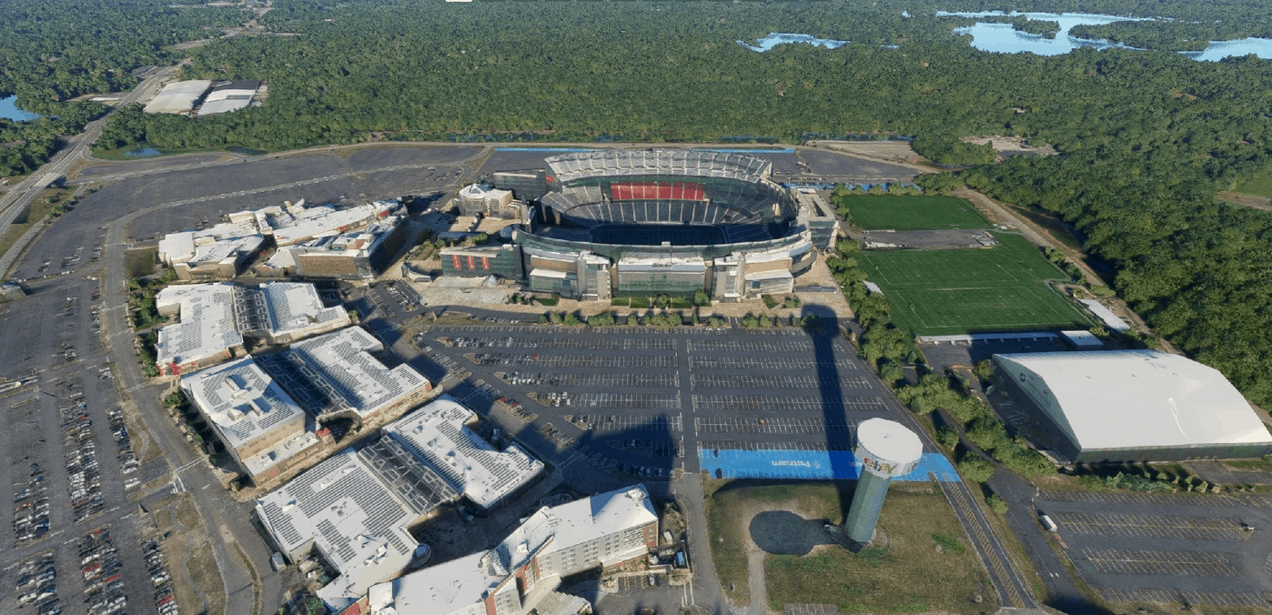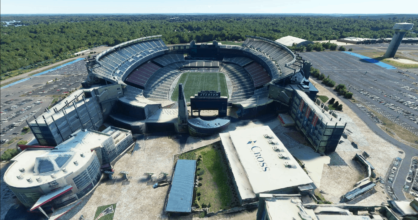 I actually like the fallout-eque Gillette Stadium in MSFS with its mystery house in the endzone, I did this to see if in the Google imagery if you could fly under the bridge.. that didn’t quite work out but I finished it up anyway. Includes surrounding buildings, Patriot Place Shopping Plazas, Hall of Fame and most important of all, the Bass Pro Shop.