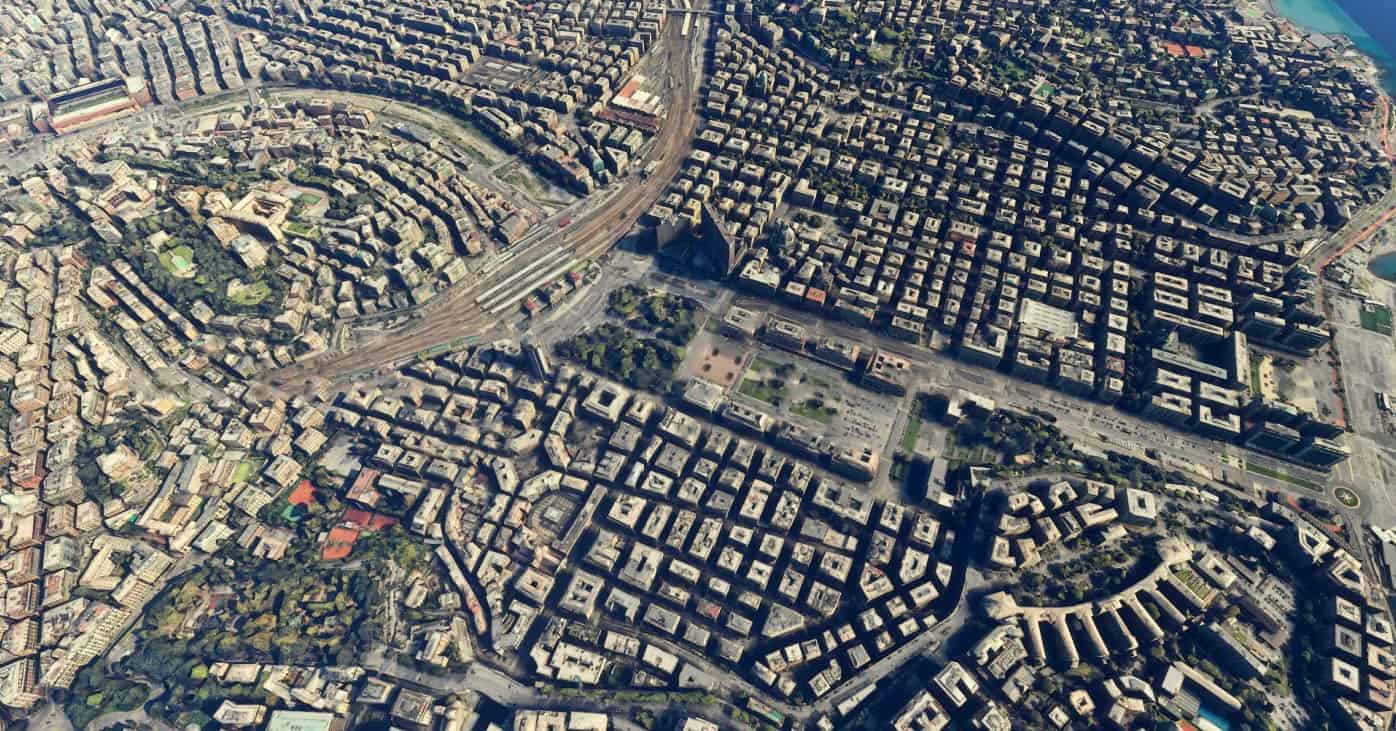 Creazione della città di Genova è stata completata con tutte le aree urbane, i monumenti, le stazioni e il porto.