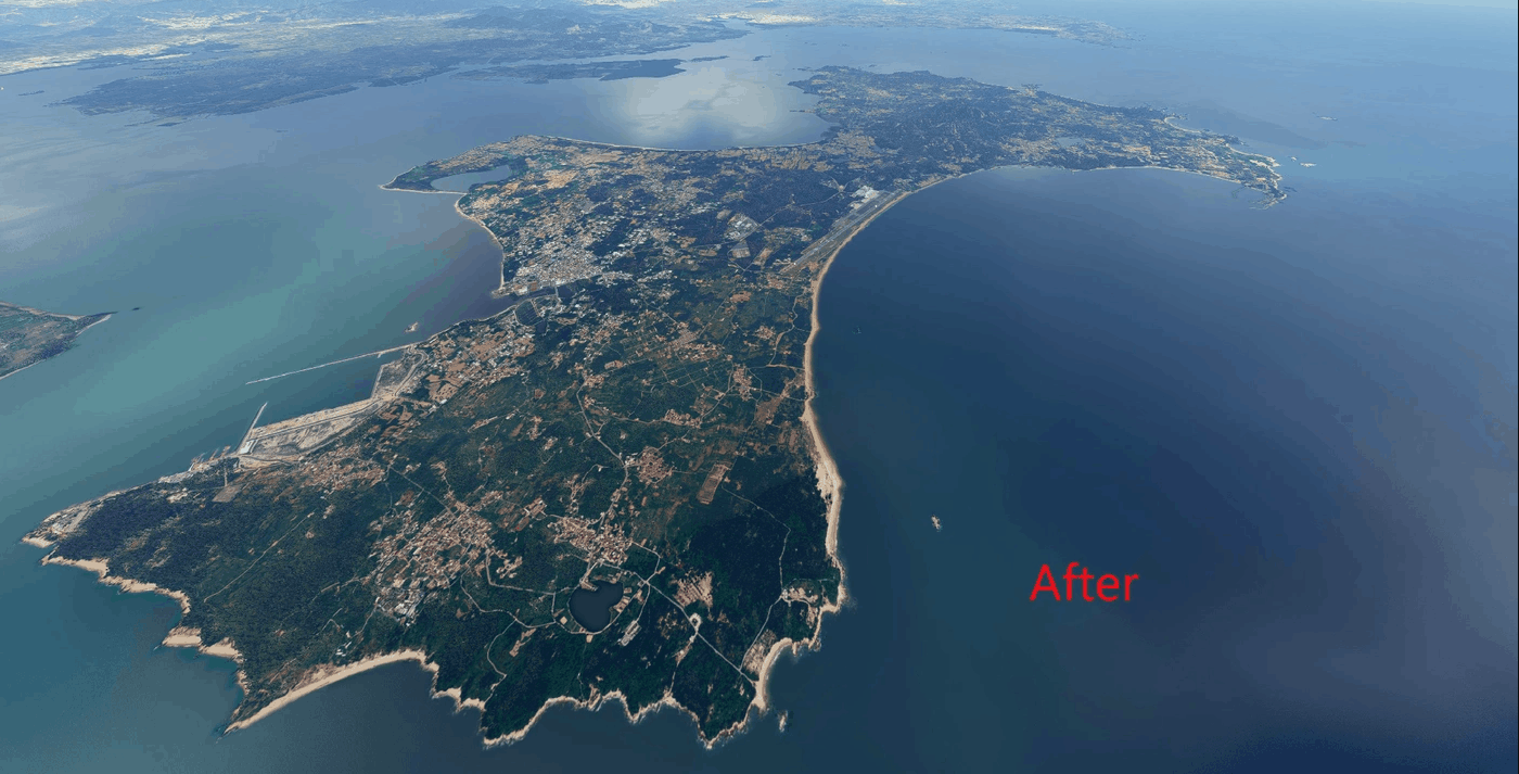 Kinmen Airport (RCBS) is missing in default FS2020. The Bing map data in MSFS is also missing on Kinmen Island. This package provides a whole major Kinmen island aerial enhancement. You can also download “RCBS Kinmen Airport, Taiwan” to have the local airport insight.