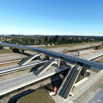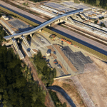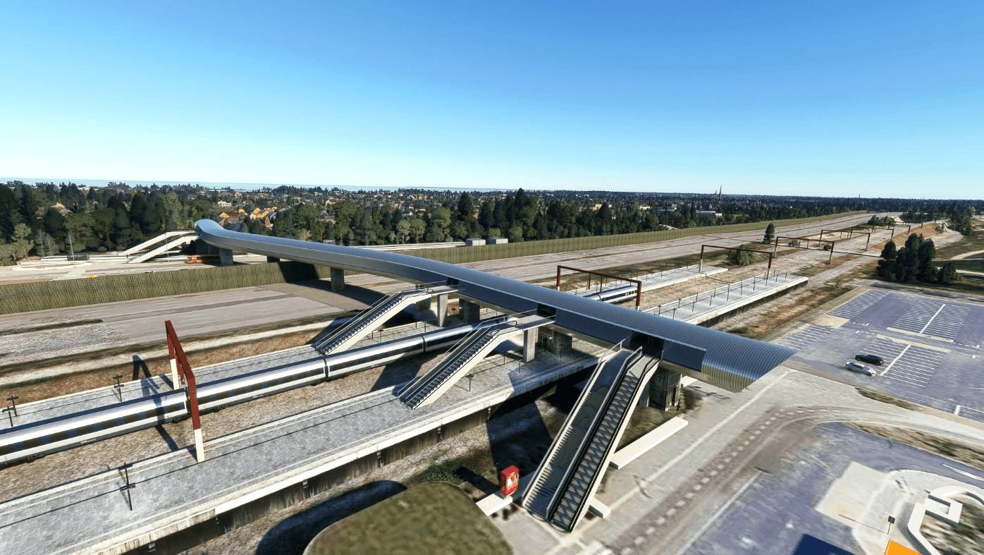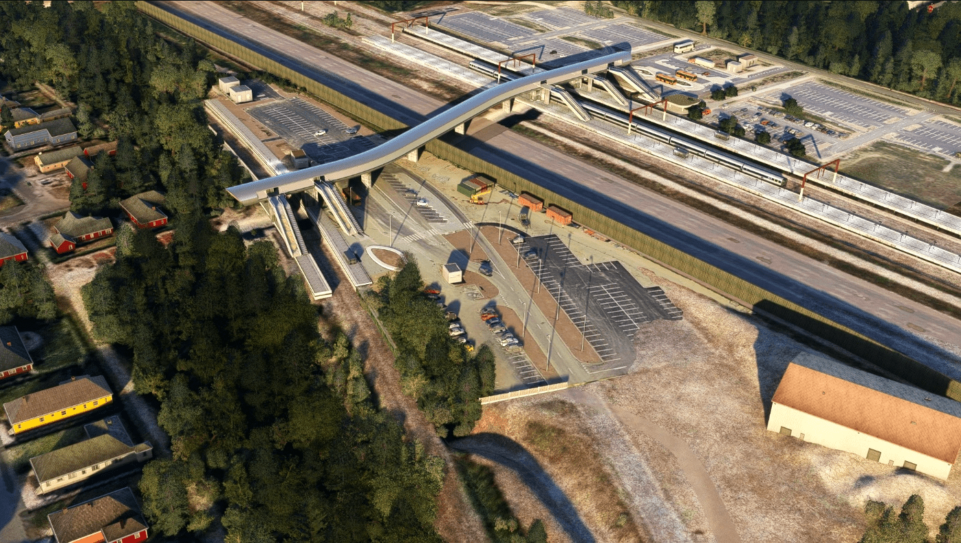 The two stations, one for regional trains, and the second for local S-trains, are divided by the E20/E45 motorway. A 225 metres long passenger bridge has been build, linking those two stations. From the bridge, you have a view over the landscape. 100.000 cars are daily passing under the bridge.
