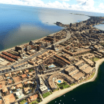 Historically, it was known by the Romans as Palus and later by the Moors as Al Buhayrat Al Qsarand. In the 17th century its name changed to Mar Chico, meaning “small sea” and later as El Mar Menor. Originally, it was a bay opening into the Mediterranean; at either end, volcanic reefs gradually held back the sand and sediment that was dragged along by the sea currents to form a sandy column of dunes and rock vegetation and long beaches in contact with two seas. La Manga sandbar is cut off by natural channels that keep the two seas in contact with each other; the so-called golas allow water from the Mediterranean into the lake. As such, the space was untouched until the 1960s, when La Manga was discovered as a tourist resort and underwent a transformation which included the urbanisation of the area and the construction of tourist infrastructures.