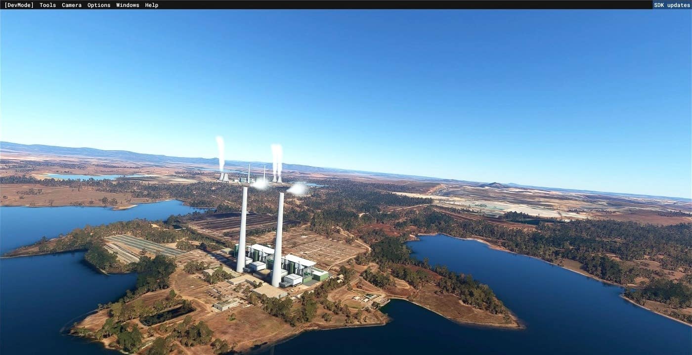 The model will fuction well as is. But if you would like smoke from the stacks ( smoke density is differnt on each stack) then please search for and download the smoke package from Photosbykev named “PBK Effects Library ” and drop it into your community folder. (Thanks for the great work Kev!) for best smoke realisim make sure to set some wind at ground and around 700 ft.