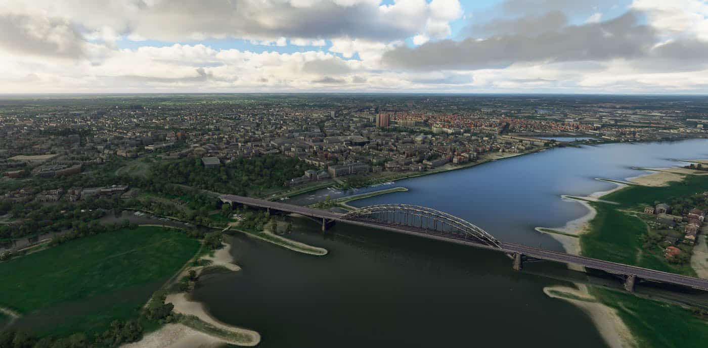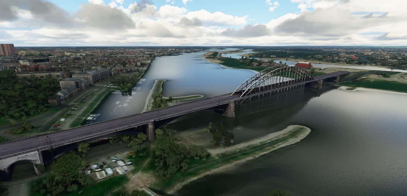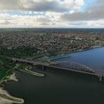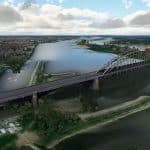 The Waalbrug is an arch bridge over the Waal River in Nijmegen, Gelderland, the Netherlands. The full length of the Waalbrug is 604 metres (1,982 ft), the middle of the arch being about 65 metres (213 ft) high. The arch itself is 244.1 metres (801 ft) long and was the longest arch in Europe at the time of construction.