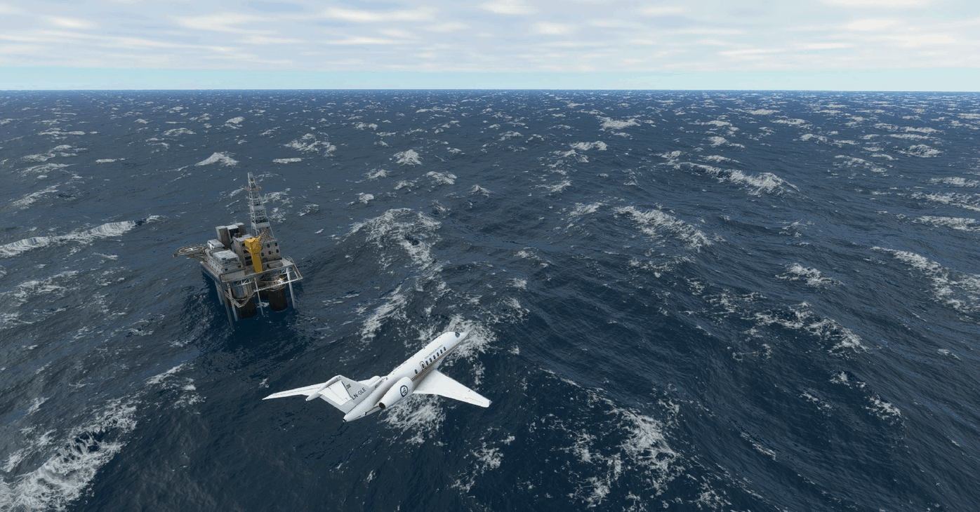 The free World update USA have to be installed – I think the MS Flightsim oilrig and tanker is a part of this package.