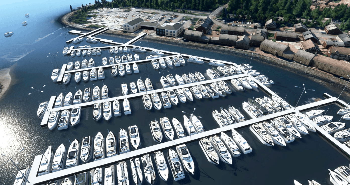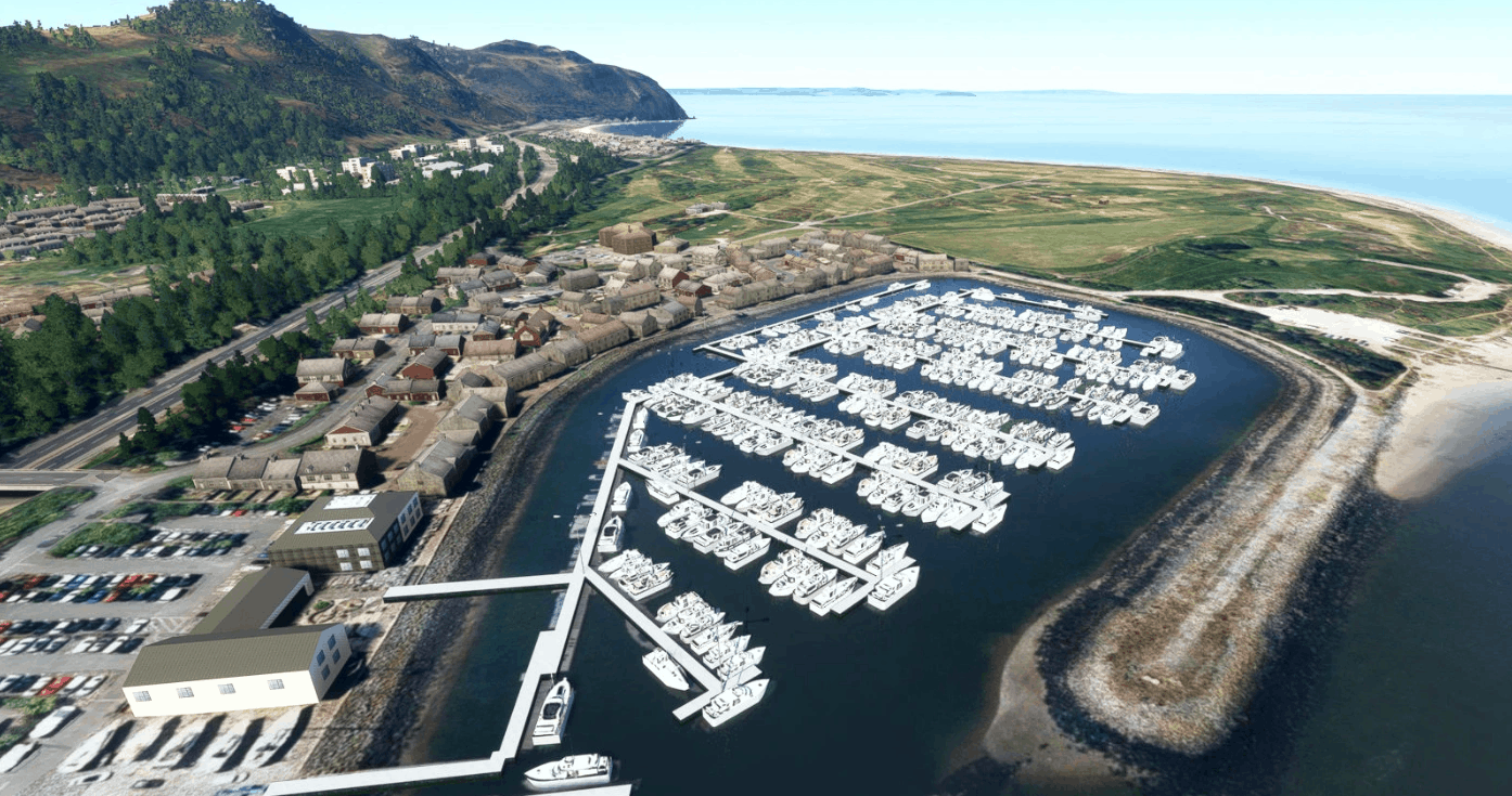 A bit of an experimental side project to complement my North Wals POIs. The marinas around the coast need improving – the map photo half-sunken boats are a bit off-putting. I’ve knocked up a selection of boats – not too detailed to save on polys – and combined them to create more realistic marina/harbour areas. They look fine when flying and even at 200ft I think they stand up. Tidied up some buildings and added some night lighting.