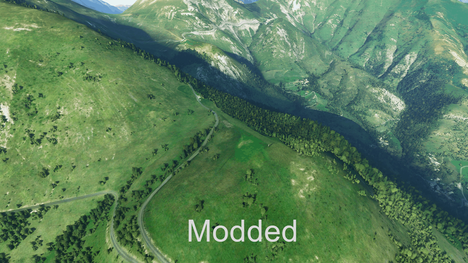 A re-work of the default Notre Dame de la Salette airstrip located in the southern portion of the French Alps, just southwest of Courchevel. The mod contains the re-terraformed airstrip and a touch-up of a small village to the south of the strip.