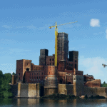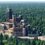 Castle in Stobnica – a newly built castle in the village of Stobnica in the Greater Poland Voivodeship. Since 2015, an imitation of a medieval castle is being built on an artificially built island in ponds near Stobnica. A structure approximately 150 m long and 100 m wide, with a 50 m tower