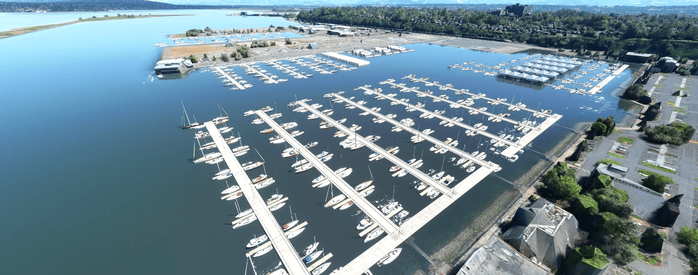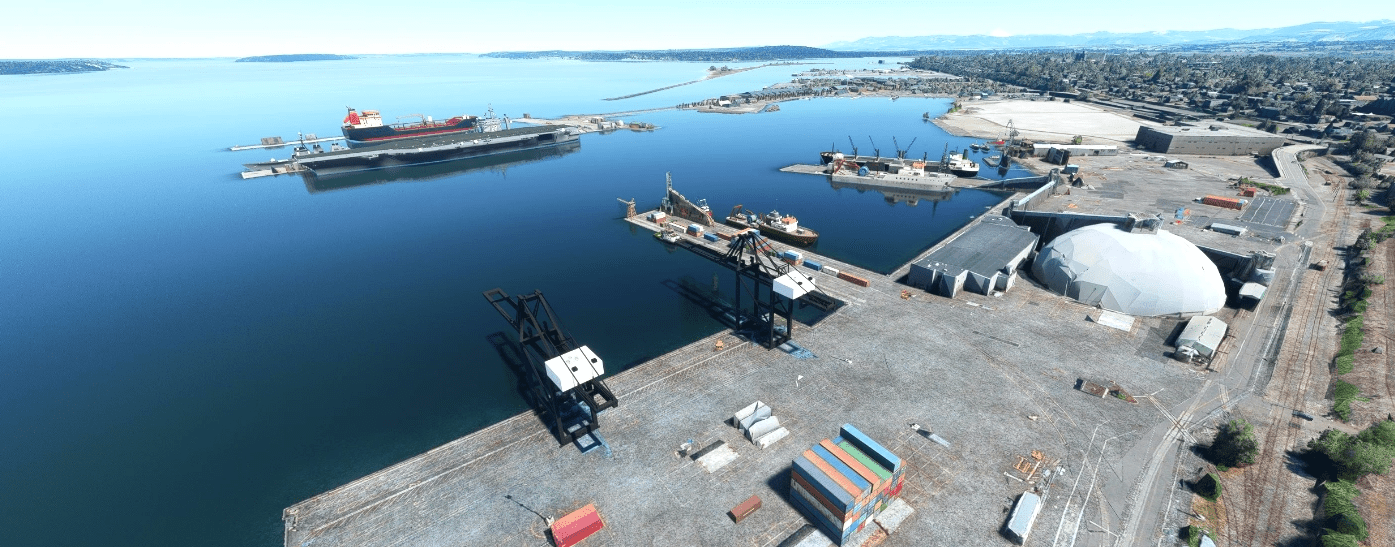 Scenery package for the Port of Everett and Marina in Everett WA, about 20 miles north of Seattle. Includes the port facilities near the naval station and the marina on the north end of the bay. If you’re looking for the US Navy ships, download my US Navy Washington State scenery package.