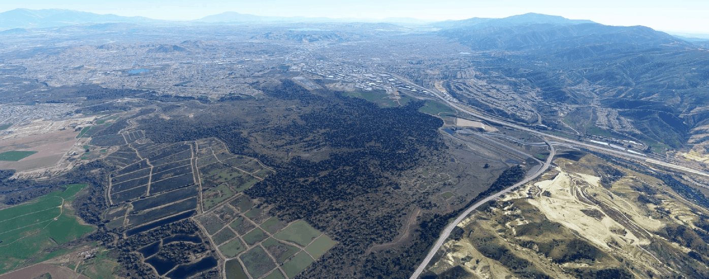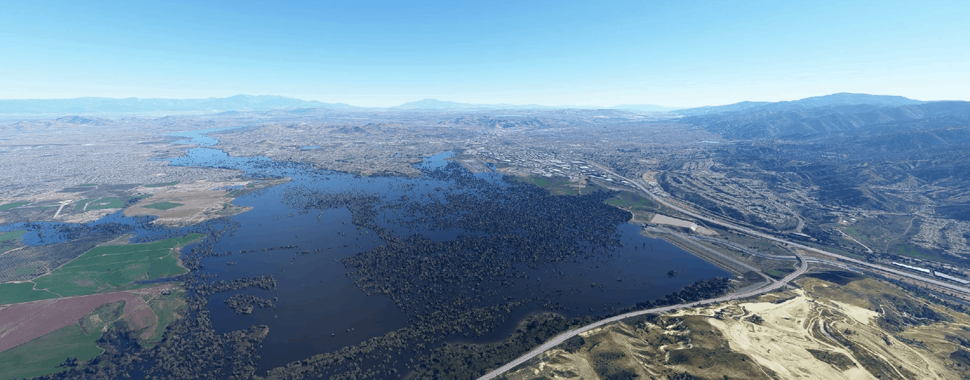The goal of this mod is to fix the glitchy default scenery for Prado Reservoir that is a real eyesore when flying in the San Bernardino county area of California (near Corona, CA). By default, a large water poly is incorrectly placed over the photogrammetry scenery causing spikes to poke through the water. This fixes that and only places water where it exists in the photo scenery.