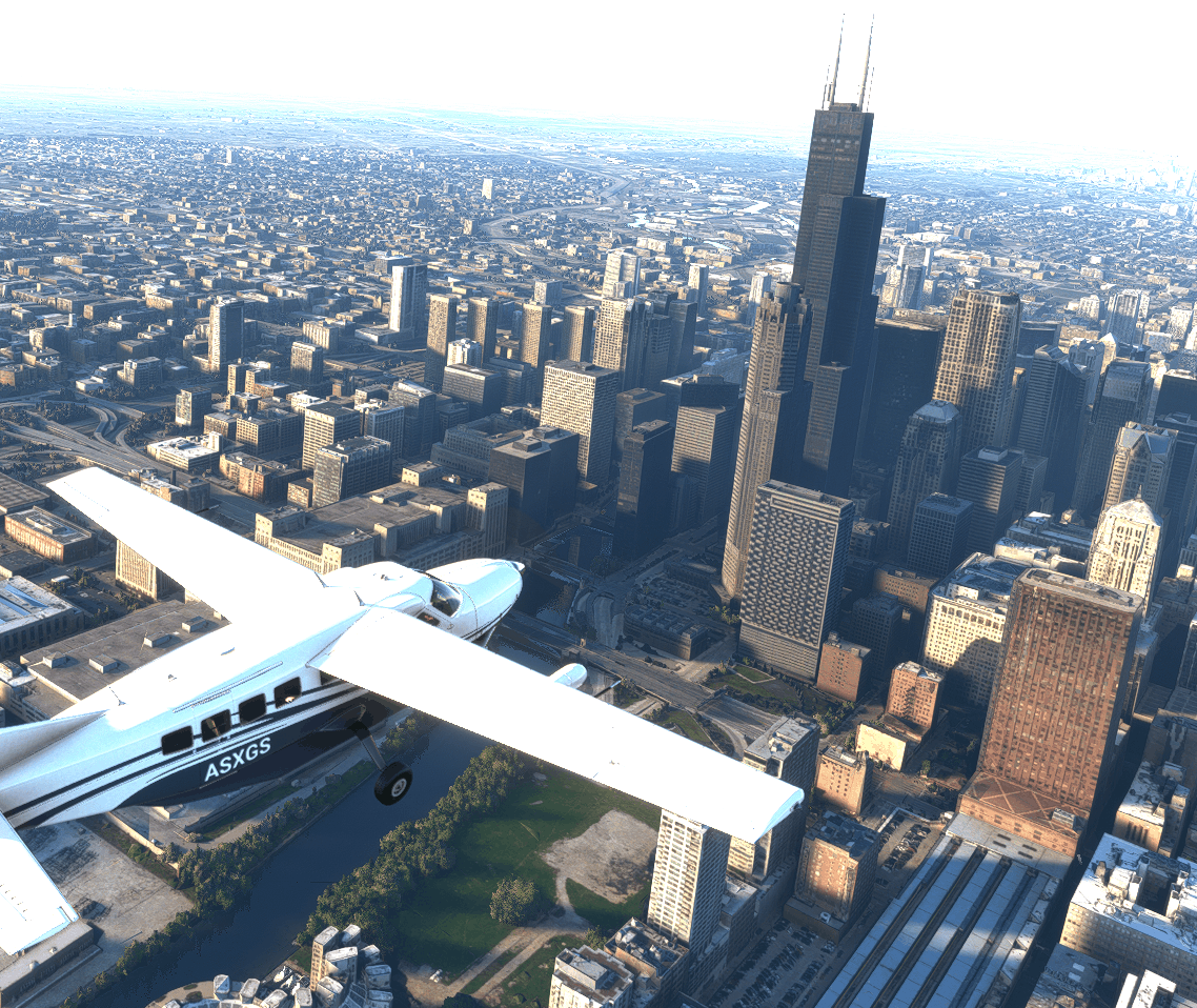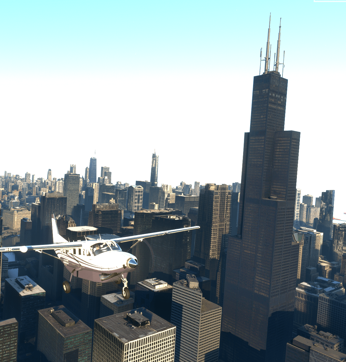 This mod replaces the default Sears (Willis) Tower model and immediate surrounding buildings in Chicago with higher resolution models that include updated imagery and full building features.