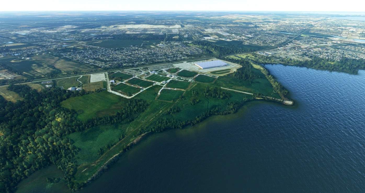 – Basic hand-modeled recreation of the buildings on the Sports Force Park site. This was somewhat of a quick-and-dirty project, as I was tired of seeing the defunct airport on top of a totally different ground image as I wrapped up the Cedar Point project, but didn’t want to just leave flat ground. That said, the building models are reasonably accurate if super basic in mesh and texturing. I also added a warehouse to the west of the site (no longer standing in 2020, but present in the MSFS imagery) from Asobo’s generic object library.