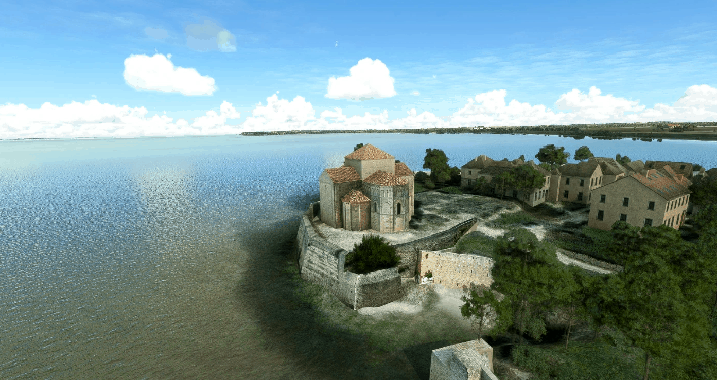 The church and cliffs of Talmont-sur-Gironde have been recreated manaully from various photos and videos from the internet. The church comes with its own lights and POI.