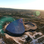 La “Vela” (“The Sail”) was designed by the Spanish architect Santiago Calatrava in the early 2000s on behalf of Roma’s University of Tor Vergata and was to host the 2009 World Swimming Championships, but the works were not completed in time.