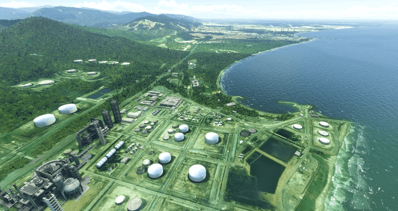 To quickly get in the air and see the refinery, you should take-off from RWY11 of the Puerto Cabello Airport (SVPC), then turn to your left (or right, but be carefull with the mountains) to a 270 deg heading, fly low (around 1,000 ft) and slow (around 100 knots) and look for the refinery to the coast. Watch out if flying too low and slow, because of the frequent explosions!.