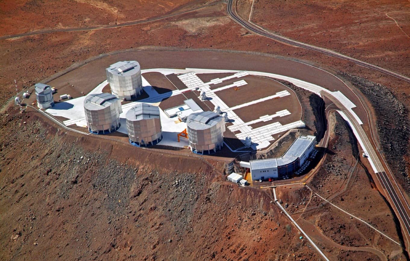 The Very Large Telescope (VLT) is a telescope facility operated by the European Southern Observatory on Cerro Paranal in the Atacama Desert of northern Chile. The VLT consists of four individual telescopes, each with a primary mirror 8.2 m across, which are generally used separately but can be used together to achieve very high angular resolution.[1] The four separate optical telescopes are known as Antu, Kueyen, Melipal, and Yepun, which are all words for astronomical objects in the Mapuche language. The telescopes form an array which is complemented by four movable Auxiliary Telescopes (ATs) of 1.8 m aperture.