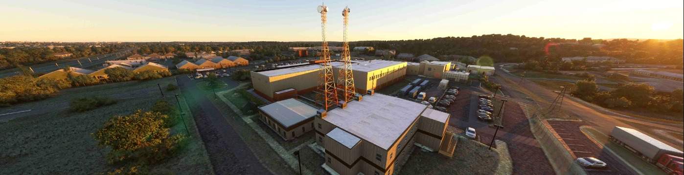 This add-on includes a detailed represenation of the Washington Air Route Traffic Control Center (ZDC) in Leesburg, Virginia. The facility can be found about 1.6NM northeast of the Leesburg Executive Airport (KJYO). The scenery is created from the ground up, using PBR textures, night lighting effects, and Google-derived satellite imagery.