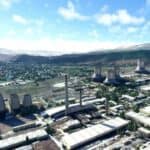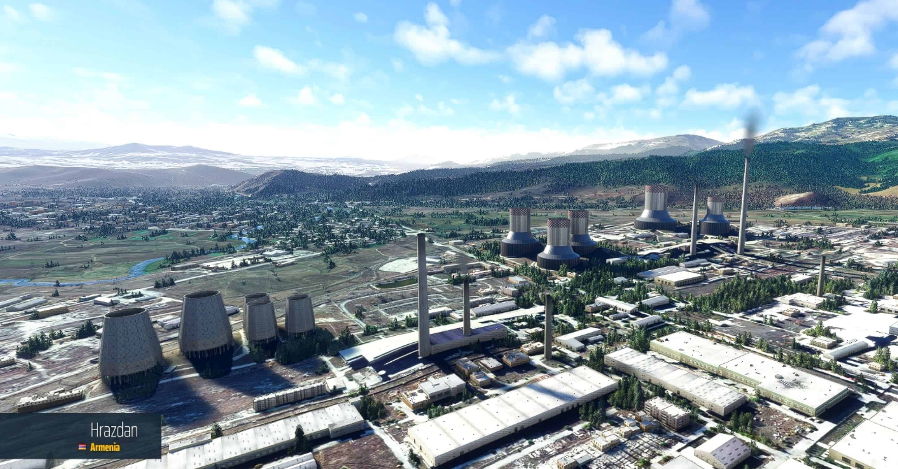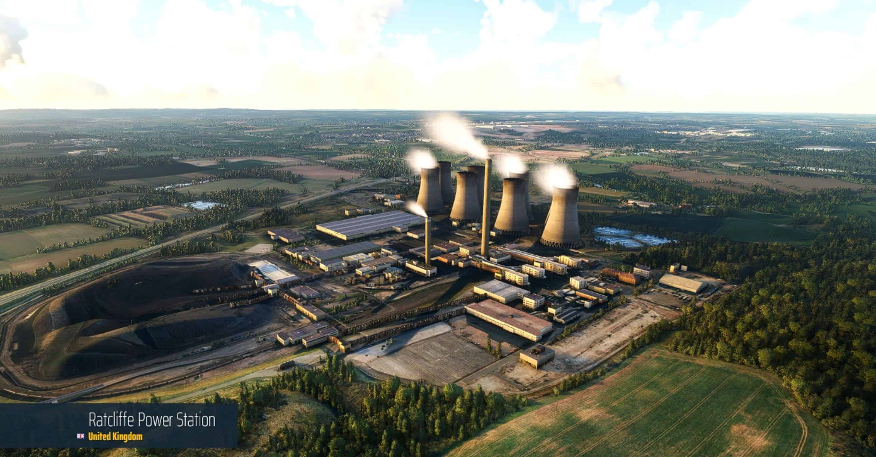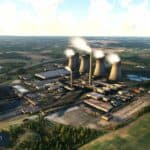 – in very rare cases there might be an office building instead of a chimney (I don’t mean cooling towers, these are not implemented in the mod at all… yet). Same with the office building in place of the demolished cooling tower. This is a case of mismatched data between Asobo and OSM and has to be fixed manually.