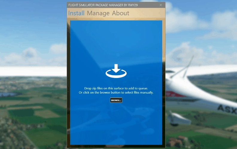 Drag and drop your downloaded zip, rar and 7z files and add them to your Flight Simulator with the click of a button.