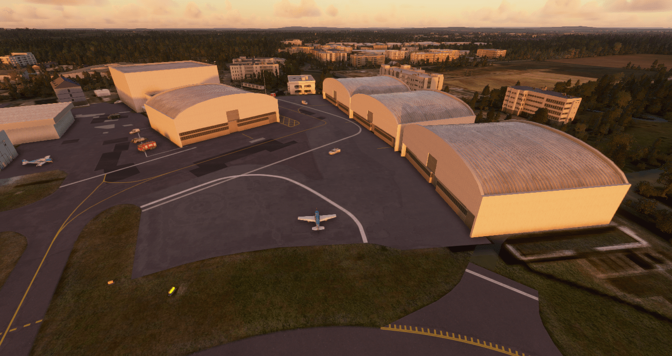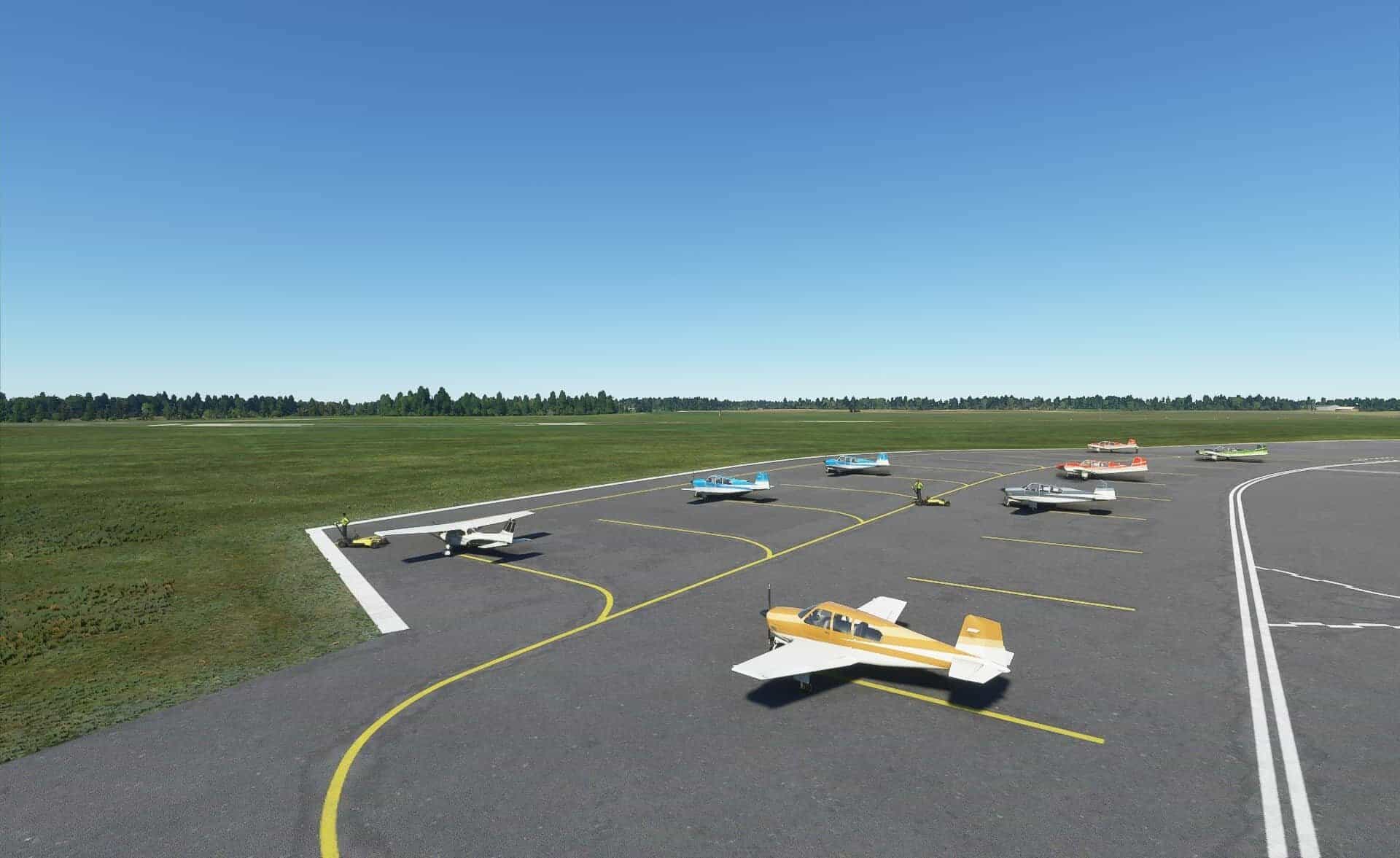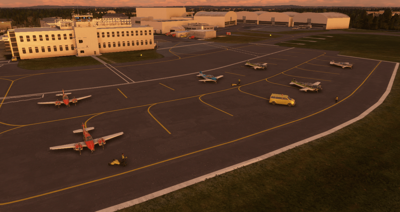 London Oxford airport is a relatively small airport to the North West of London which sees primarily private jets and general aviation aircraft. With the base sim, the airport is a small strip on the ground, but thanks to the work put in by Benjwri, we’ve now got all the details you could ever ask for – ground crew, planes, trucks, hangars, parking bays, etc!