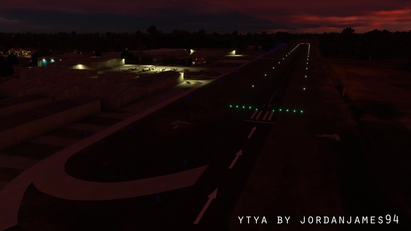 – Includes night lighting for runways, taxiways, main apron and some hangars as well as a lit windsock.