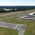 Lee Gilmer Memorial Airport (KGVL) is located in northeast Georgia near the city of Gainesville. The airport is approximately 50 miles northeast of Atlanta. KGVL is a public airport with 2 runways. Runway 5/23 is the longest of the two, at 5500ft, and runway 5 is equipped with ILS. Runway 11/29 is 4000ft long, unlit, and without published instrument approach procedures. There are multiple hangars west of runway 5/23, including a unique looking FBO building. Another unique feature at KGVL is the glideslope antenna. Due to space constraints west of runway 5, KGVL employs the end-fire glideslope antenna to support vertical guidance in the ILS.