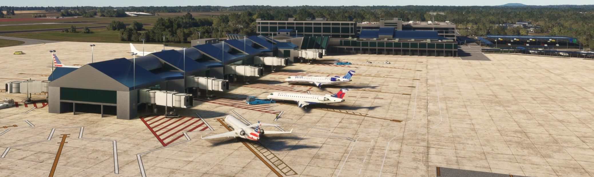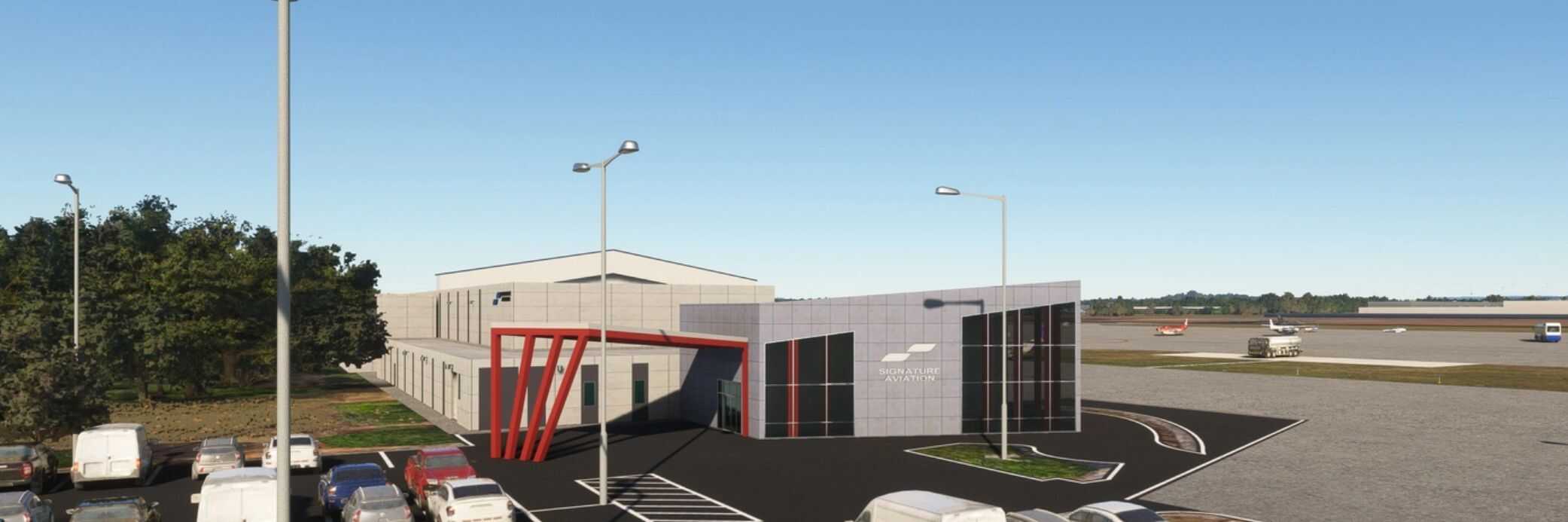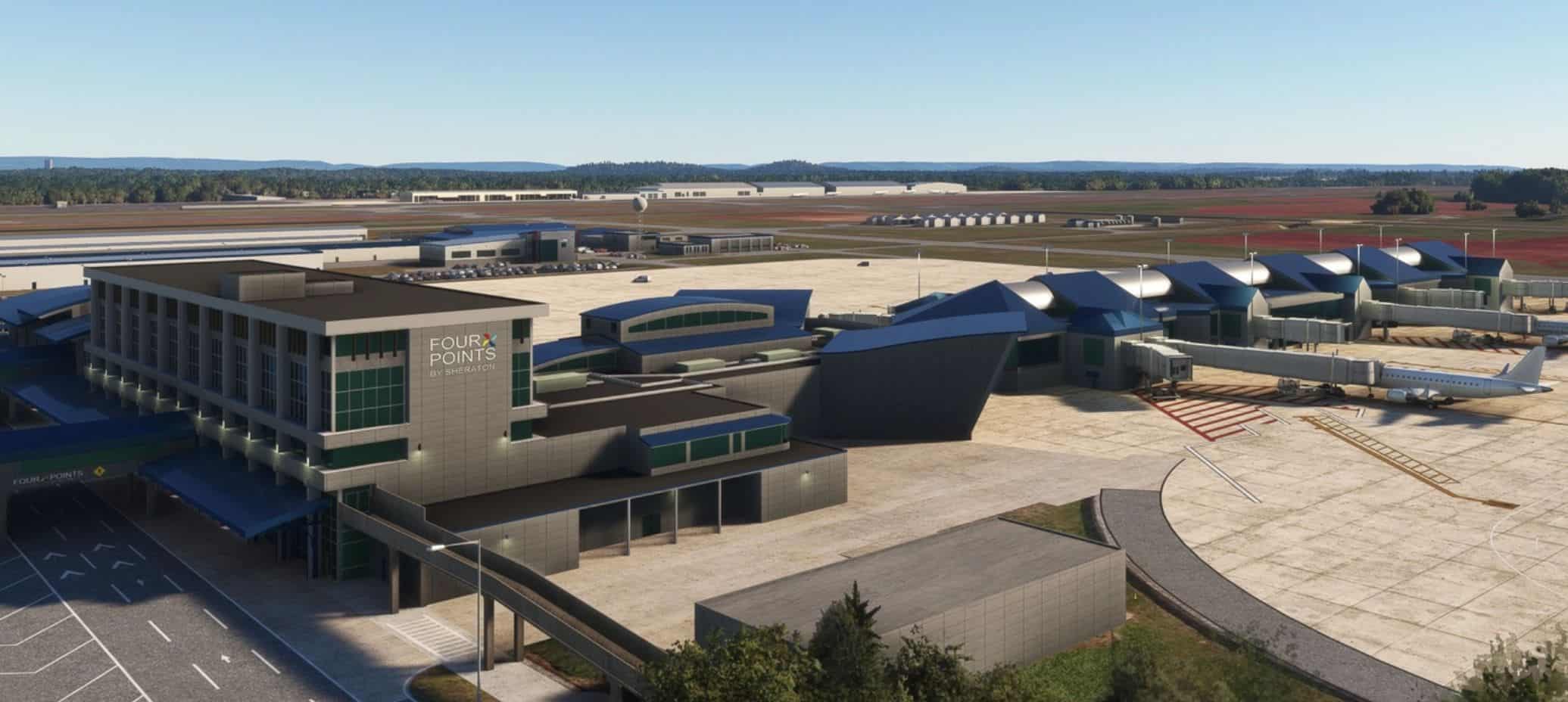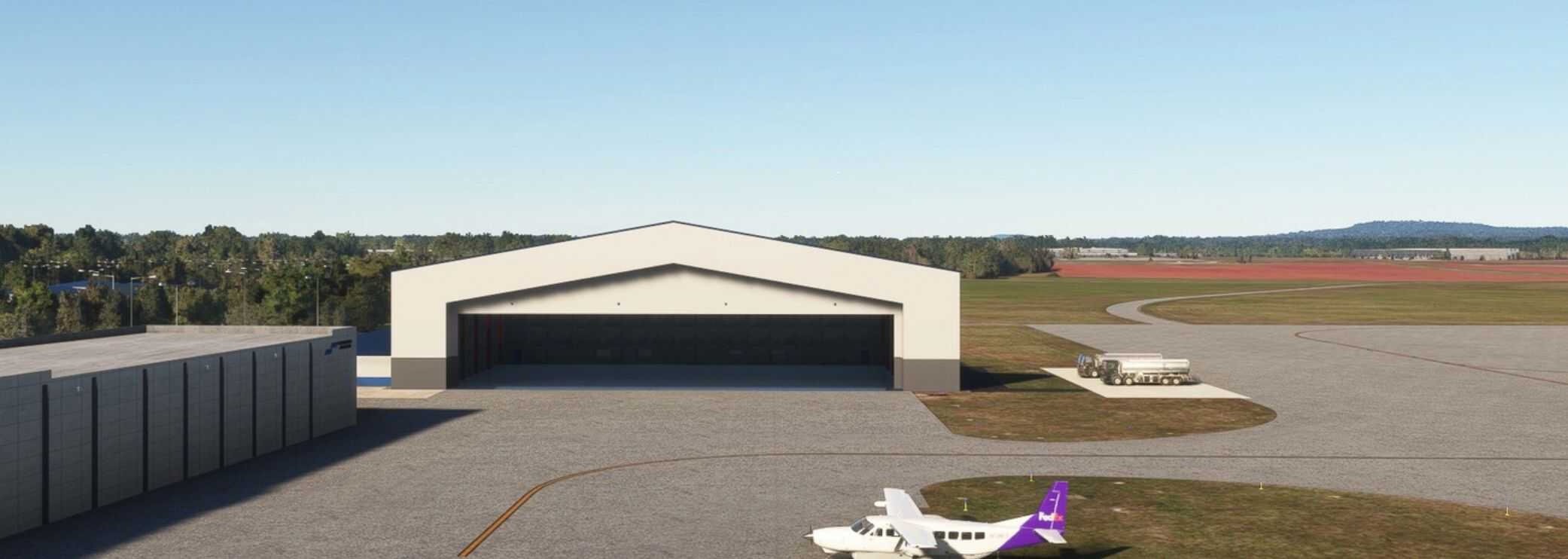 The airport is located 10 miles southwest of downtown Huntsville Alabama. It is a public service airport and spaceport which is the re-entry site for Dream Chaser, a spaceplane operated by Sierra Space to make reentries from Low Earth Orbit (LEO). All models are hand-crafted along with a total of 25 open hangars with animated doors (24 identical with doors that rotate outward and slide back inside the hangar. All animated doors are open from 6am until midnight local time. The doors in all of my sceneries can be opened and closed by hiding and un-hiding the flight yoke during hours that the doors are closed.