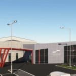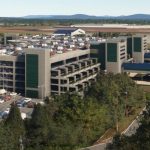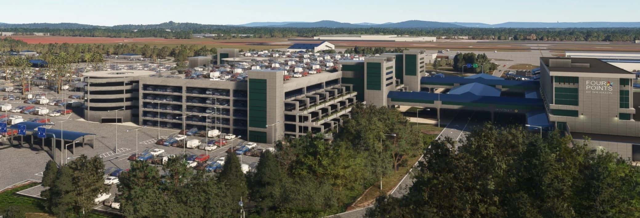 The terminal ramp area is at a higher elevation than the hotel and garage, This was not modeled in the scenery due lack of enough data to attempt it. If someone is willing to take on this task I am willing to provide the models or I can use their input to adjust my models to fit.