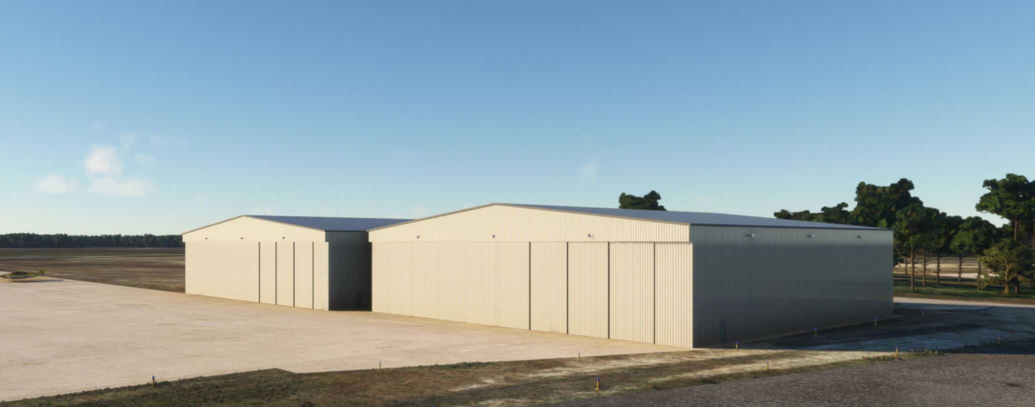 This scenery includes all available buildings on Google Earth/Maps for KVRB, handcrafted along with custom ground textures and open hangars with animated doors that are open from 6am to midnight local time. The doors can be opened and closed by hiding/unhiding the flight yoke during hours that the doors are closed. I reduced the number of post in the fence by 50%, but kept it a separate package for those that may have issues using the scenery with the fence.