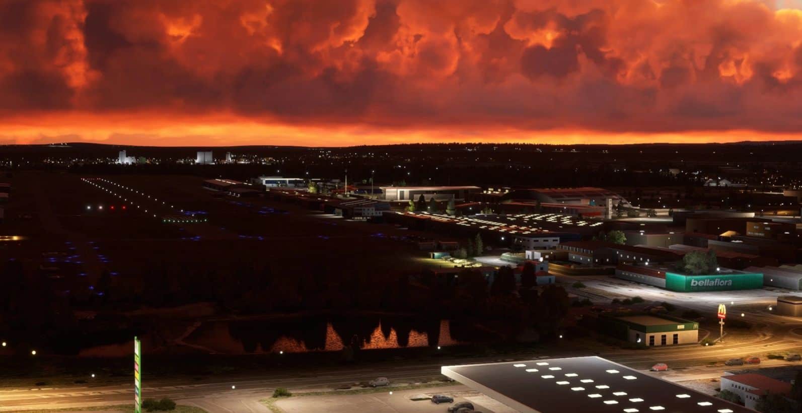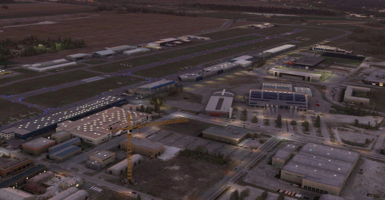 Close to real life runways, taxiways, terraforming, ground markings, parking spots & frequencies according to official AIP Charts