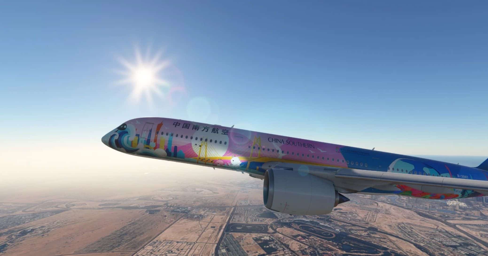 This release features the striking 15th National Games of China special livery for the Inibuilds A350-900. The aircraft, registered as B-308T, wears a unique, commemorative China Southern design celebrating the national sporting event, making it a standout addition to your virtual hangar.