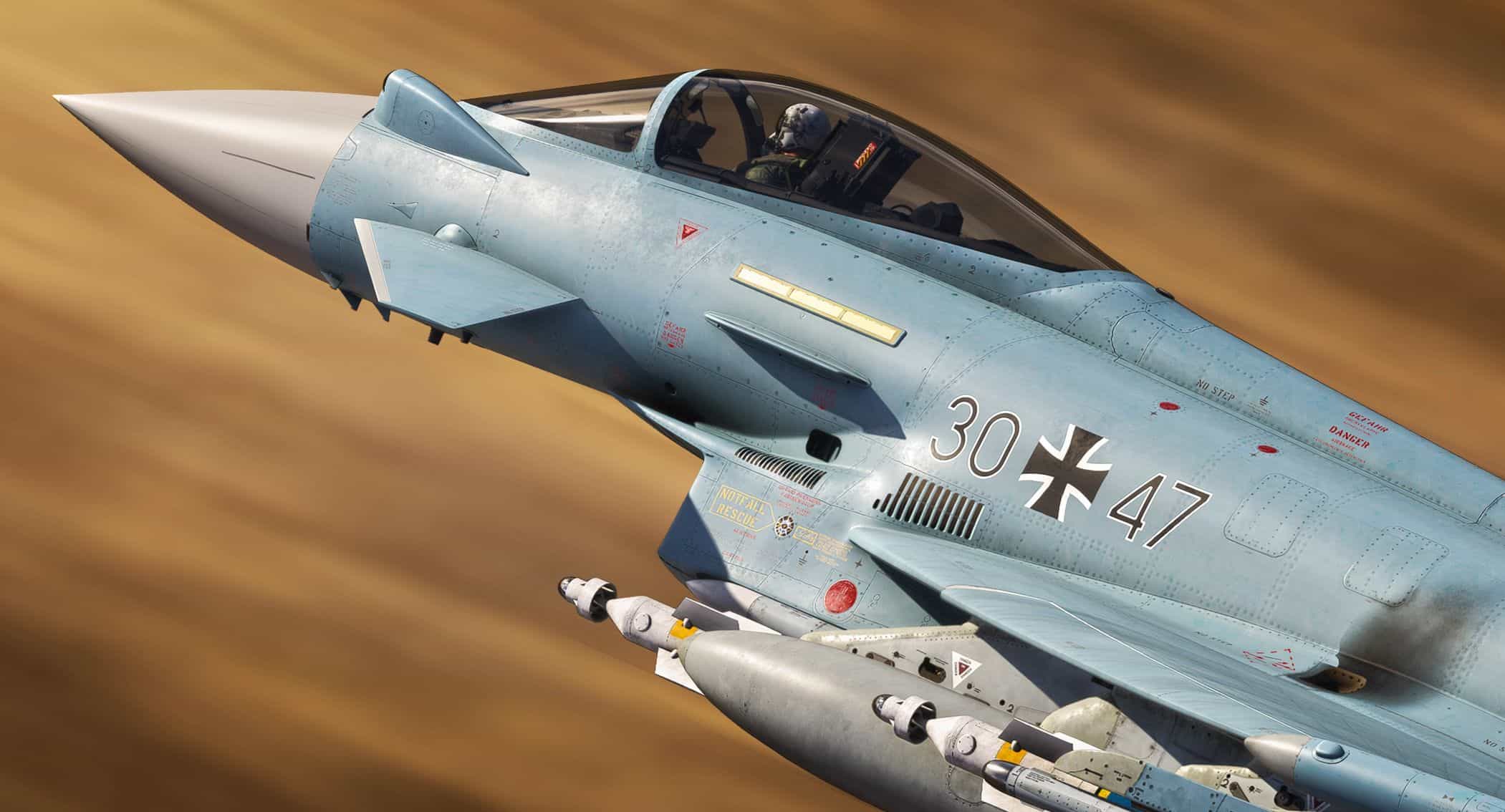 This add-on features a detailed repaint for the IndiaFoxtEcho Eurofighter Typhoon, representing German Air Force Typhoon GAF 30-47 A modern looking texture to the Helmet and some colouring to GBU’s have been changed. A big mention to Wooosh Boom for his screen shots which are incredible.