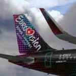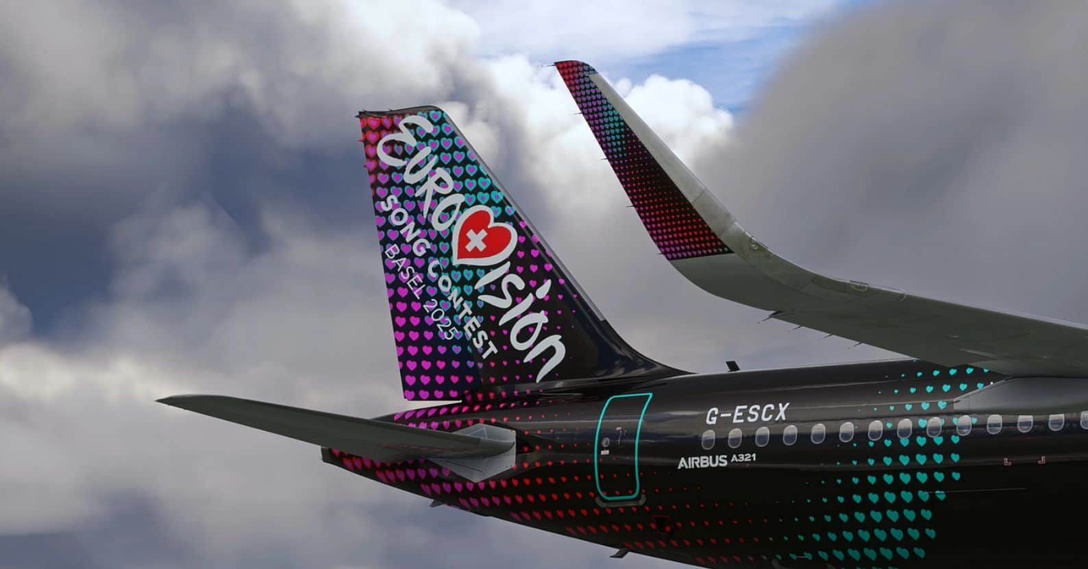 Fictional repaint for the virtual airline Osprey Airways ran by British Avgeek on YouTube, promoting 2025’s Eurovision Song Contest to be held in Basel, Switzerland. Eurovision logos and theme art credit to EBU and SRG SSR. Heart shaped flags credit to Serarped.