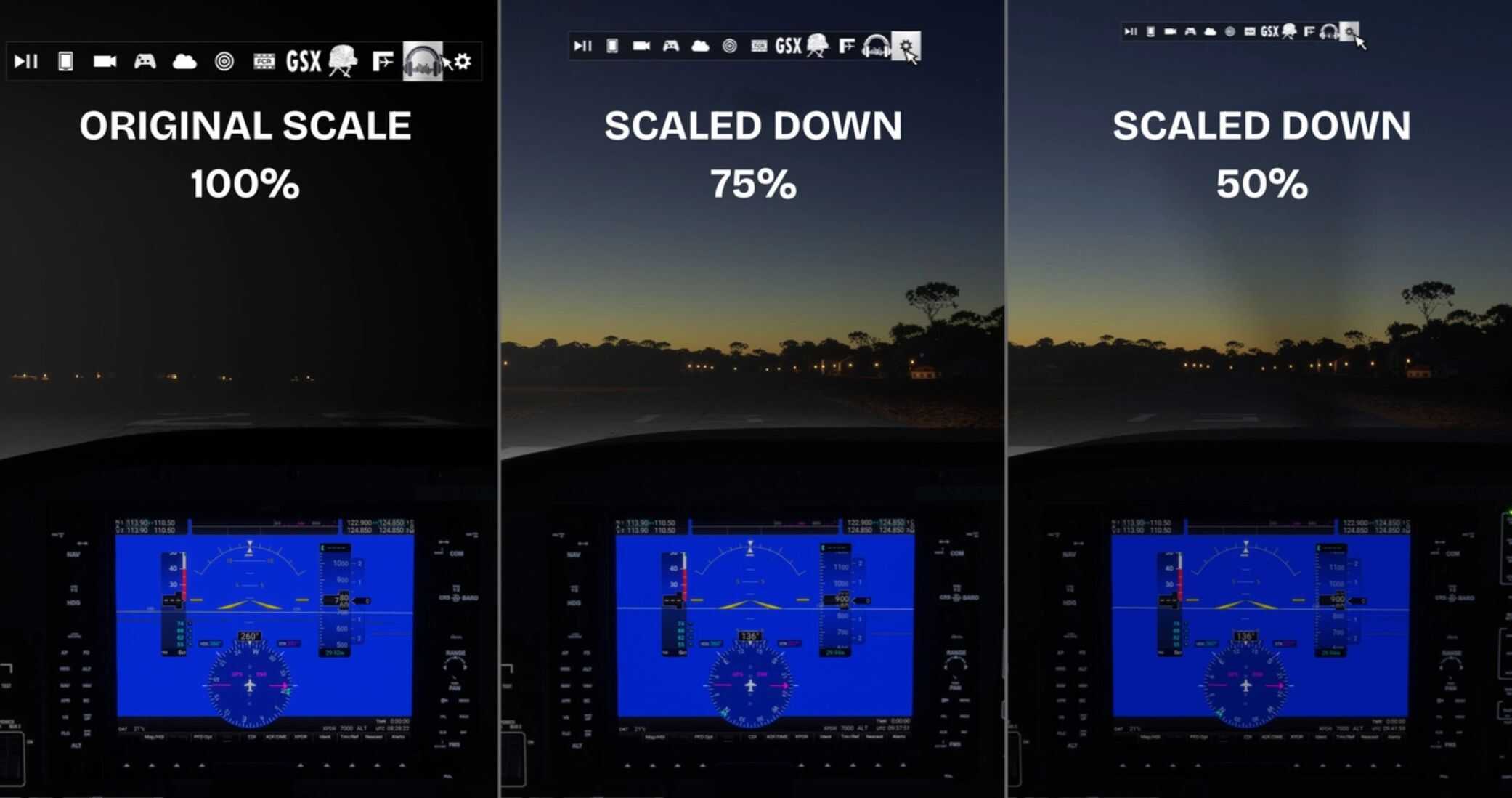Makes the default MSFS 2024 toolbar smaller and cleaner — including no more white mouse trigger line.