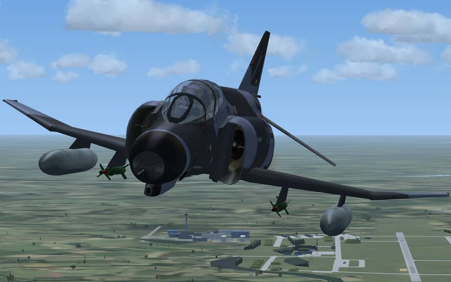 Demo version. The McDonnell Douglas F-4 E/F Phantom 2 is a two-seat, twin-engined, all-weather, long-range supersonic fighter-bomber originally developed for the U.S. Navy by McDonnell Aircraft. Proving highly adaptable, it became a major part of the air wings of the U.S. Navy, Marine Corps, and U.S. Air Force. It was used extensively by all three of these services during the Vietnam War, serving as the principal air superiority fighter for both the Navy and Air Force, as well as being important in the ground-attack and reconnaissance roles by the close of U.S. involvement in the war. First entering service in 1960, the Phantom continued to form a major part of U.S. military air power throughout the 1970s and 1980s, being gradually replaced by more modern aircraft such as the F-15 Eagle and F-16 Fighting Falcon in the U.S. Air Force and the F-14 Tomcat and F/A-18 Hornet in the U.S. Navy. It remained in service in the reconnaissance and Wild Weasel roles in the 1991 Gulf War, finally leaving service in 1996. The Phantom was also operated by the armed forces of 11 other nations. Israeli Phantoms saw extensive combat in several Arab–Israeli conflicts, while Iran used its large fleet of Phantoms in the Iran–Iraq War. Phantoms remain in front line service with seven countries, and in use as an unmanned target in the U.S. Air Force. Phantom production ran from 1958 to 1981, with a total of 5195 built. This extensive run makes it the second most-produced Western jet fighter, behind the famous F-86 Sabre at just under 10,000 examples. Panel, GAUGES, model, sound and textures by www.afs-design.de – Author: A.Meyer.