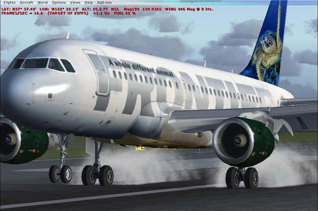 Airbus A319-100 Frontier Airlines for FSX. Frontier Airlines is a United States low-initial-cost carrier headquartered in Denver, Colorado, USA. Frontier Airlines currently operates 33 Airbus A319-100. Includes default A321 2d panel (no VC). Model by Project Airbus. High quality textures by Donald L. Derwin.
