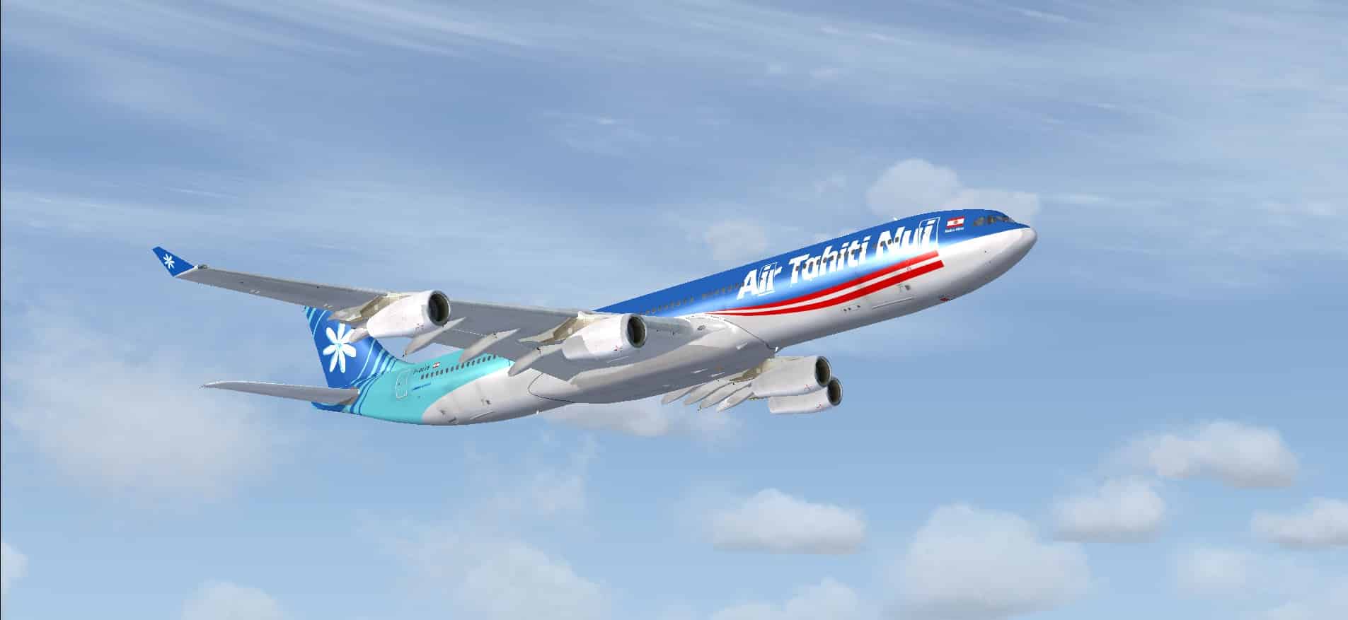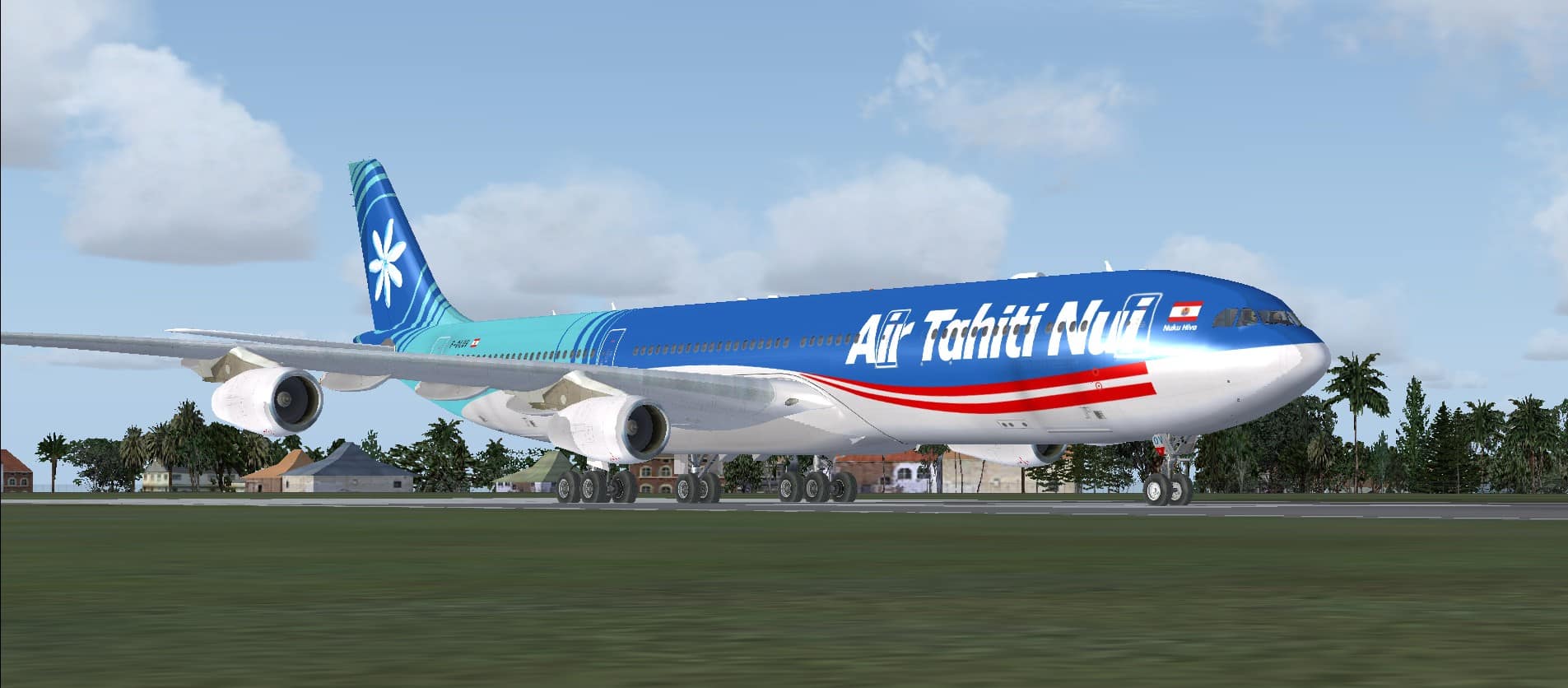 Airbus A340-300 Air Tahiti Nui. Air Tahiti Nui is a French airline with its head office in Papeete, Tahiti. It operates long-haul flights from its home base at Faa’a International Airport. As of 2015, it operates 5 Airbus A340-300 aircraft. Model and VC by Thomas Ruth. Added Garret Smiths FMC. I included the great textures by John Hancock and custom CFM soundpack. Added correct jetway configs. Assembled for FSX by Chris Evans.