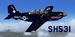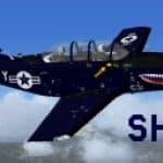 The aircraft represented is T-34C with VMFAT-101 ‘Sharpshooters’ markings it appeared in static display at the October 2008 Miramar Air Show. The aircraft is stationed at MCAS Miramar. These textures are intended for use with the Alpha Simulations T-34C Turbo Mentor payware aircraft package. Original release textures and this Repaint by Frank Safranek