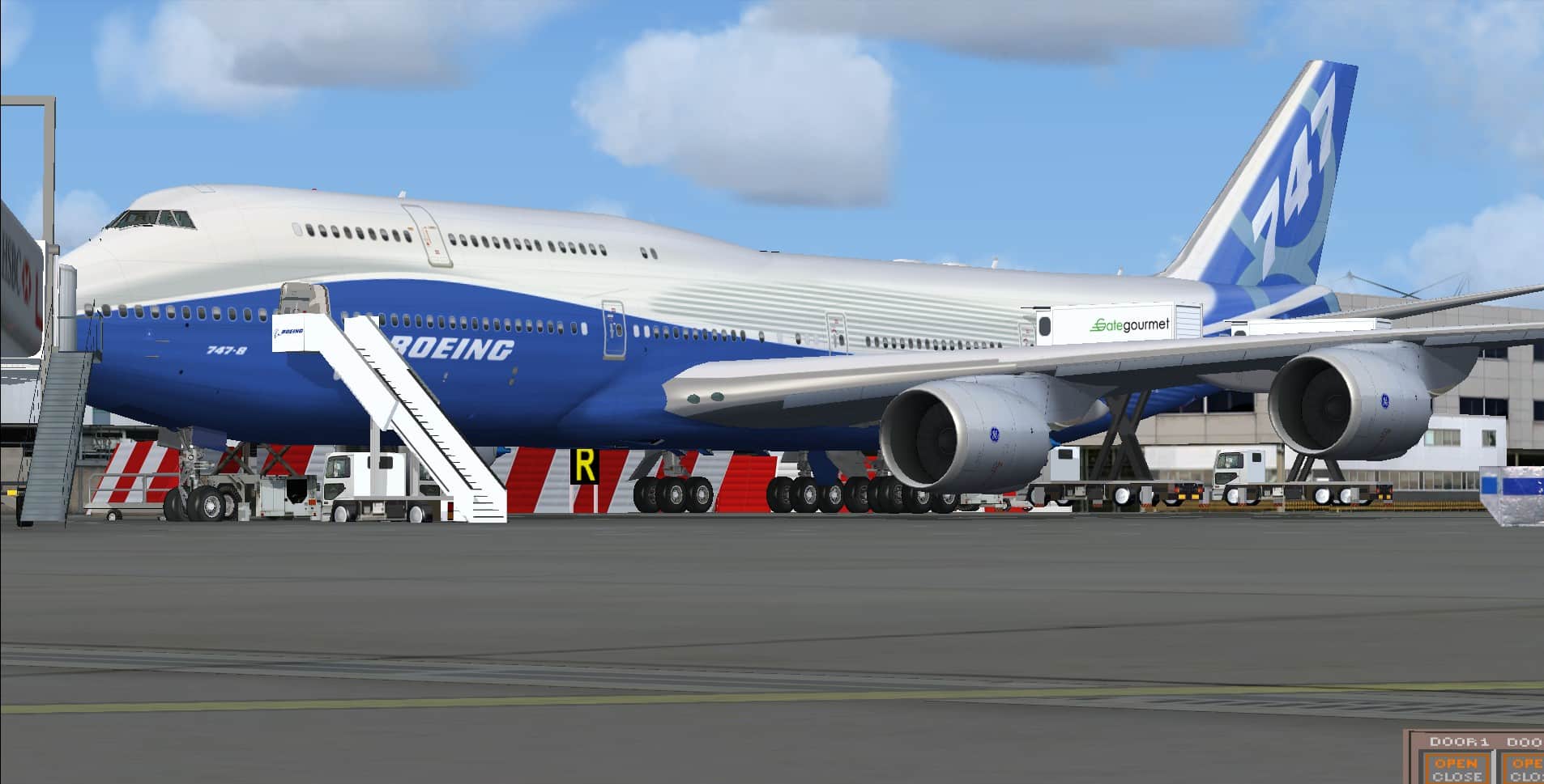 Boeing 747-8I Boeing Experimental Package with enhanced VC. Assembled and upgraded for FSX with the developed B747 VC (virtual 3d cockpit) from Alejandro Rojas Lucenda. This is the Project Opensky FSX native Boeing 747-8F GenX cargo model, and includes ground cargo servicing, stairs (FSX – Go to Views – Instrument Panel -Posky Utility), opening nose section and more. Included CF engine sounds from BrandonG, with realistic jet whine to make your flight sound great. Upgraded using the vastly improved Boeing 747 VC from Alejandro Rojas Lucena/FSND (See panel docs for details). VC includes FMC, EICAS, MFD with control panel, GPWS, working wipers, cabin lights, fire suppression, avionics switch, fuel crossfeed, landing lights switches, taxi light switch, engine generators, APU generator, battery switch, starter switches, de-ice switch, general lights switches. Thank you to Skyspirit for their outstanding donations to the worldwide community of flight simulation. I have included the great Boeing textures by Hugo Espinosa. Also includes the Boeing 747 VC textures upgrade. This give a much clearer 747 interior virtual cockpit look. Skyspirit 2012 model not modified in any way. Credits to Skyspirit for fantastic model. Prepared and assembled for FSX by Chris Evans.