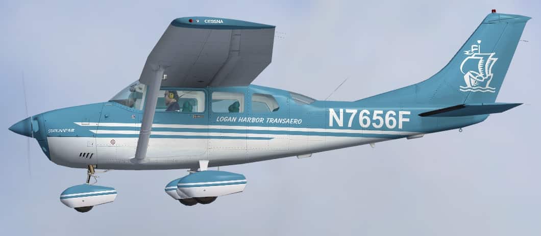 Blue and white Cessna 206B Stationair 6 II Logan Harbor Transaero N7656F textures. For the payware Carenado Cessna 206. Repaint by Tom Tiedman.