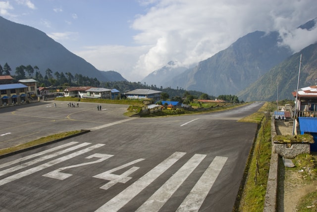 Approach to Lukla V2 (Totally New Mission) You are a very experienced pilot flying the Twin Otter for Yeti Airlines on an imaginary flight to and from Lukla. Take-off from Biratnagar airport VNVT climb to at least 13500 ft to WP1 Turn to Lukla. From WP1 carefully descent to 10000 ft (there should be cloud to make it more difficult, if you have some sort of weather add-on running) to WP2 Approach to VNLK, after passing through the gate turn sharp right and land at Lukla airport, remember that the runway has an incline of several degrees. Turn around and take-off again, stay on the runway and rotate just before the end of the runway. Follow the valley back to the south until you are able to track the VOR 112.30 at roughly 276 degrees, till you reach Kathmandu Intl Airport and land. Yes, it sounds easy, but .. find out for yourself.
