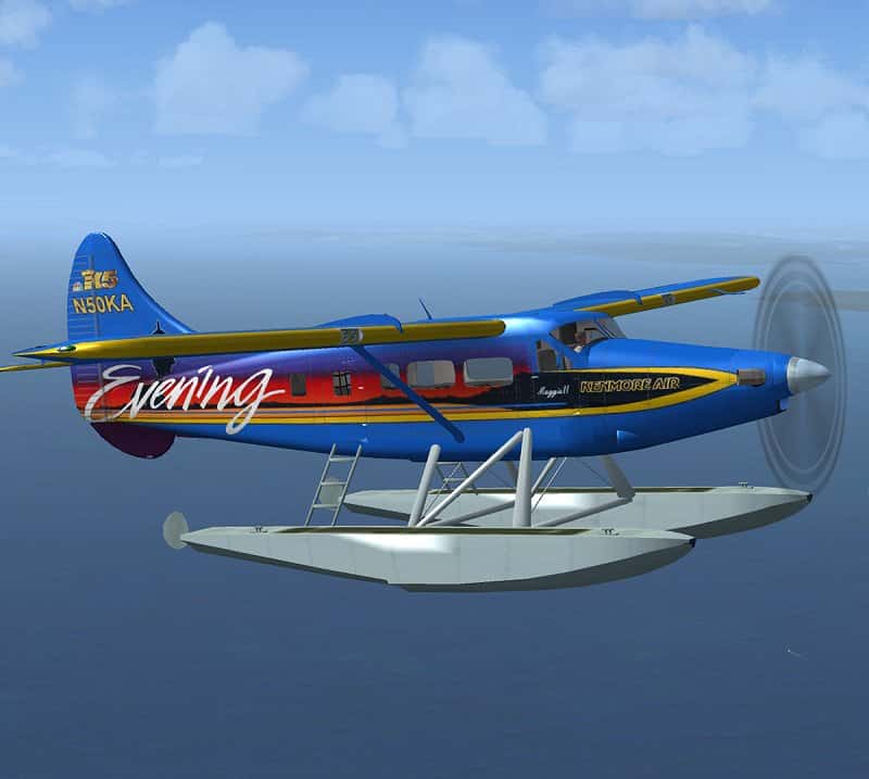 FSX De Havilland DHC3 Turbo Otter Floatplane 12 seat STOL utility transport Kenmore Air, Seattle Special edition “Evening” livery and interior by Cirrus Productions. New model with full animation, dynamic shine. Includes a 2D Panel and VC with a complete cabin, with opening crew doors, cargo doors and sound. Compatible with Acceleration/SP2 By Barry Blaisdell, Jean-Pierre Brisard, Bob May, Danny Crance and Kevin Pardy – Premier Aircraft Design.