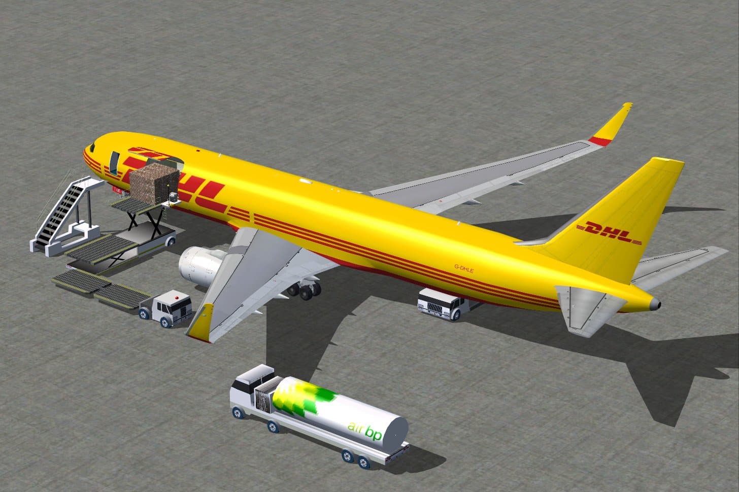 FSX DHL Cargo Boeing 767-300 ER with Blended Winglets and Animated Ground Servicing (AGS). Model design and paint by: iFDG / CamSim –