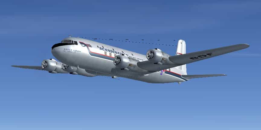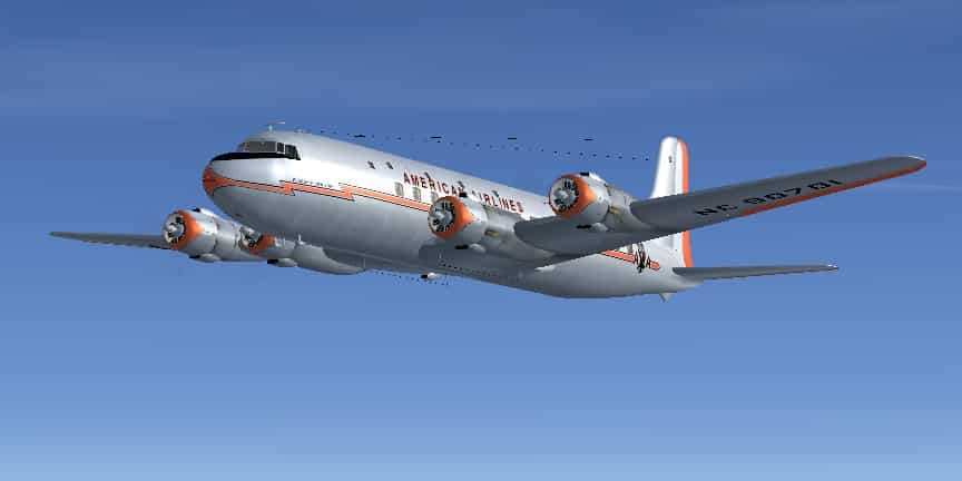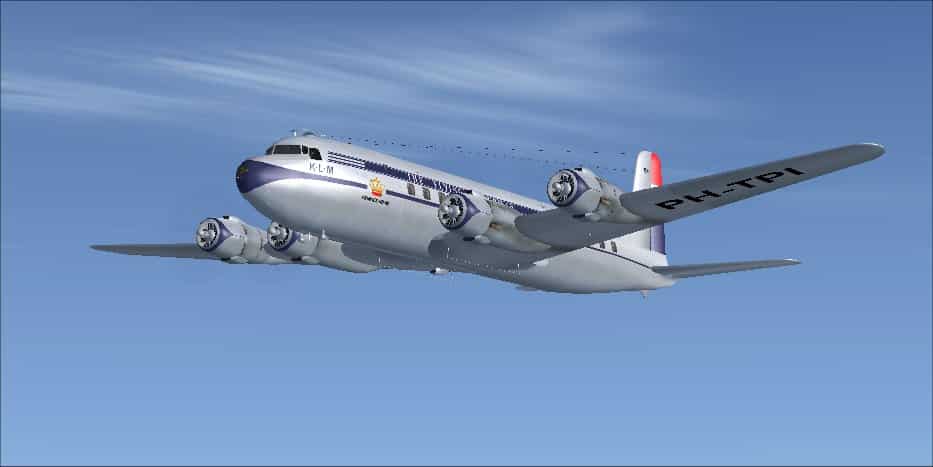 FSX Douglas DC-6 ver 2.0. This package includes the DC-6 in its earliest form with short nose (no weather radar) and round-tipped Curtiss Electric propellers as delivered to the first DC-6 customers in 1946-48. The later aircraft had the more well-known, square-tipped ‘paddle’ propellers, and this version is included as well. Most, if not all, of the early DC-6’s were later modernized to this standard, and many (especially from the U.S. operators) had weather radar installed in a longer nose. This package contains most variants, including liveries for American, United, Delta, Panagra, SAS, Sabena and KLM, nine aircraft in all. The KLM repaint is by Maarten Brouwer. Flight dynamics based on work by FSAviator. For FSX only; FS2004 users should get DC6_V20.zip instead. By Jens B. Kristensen.