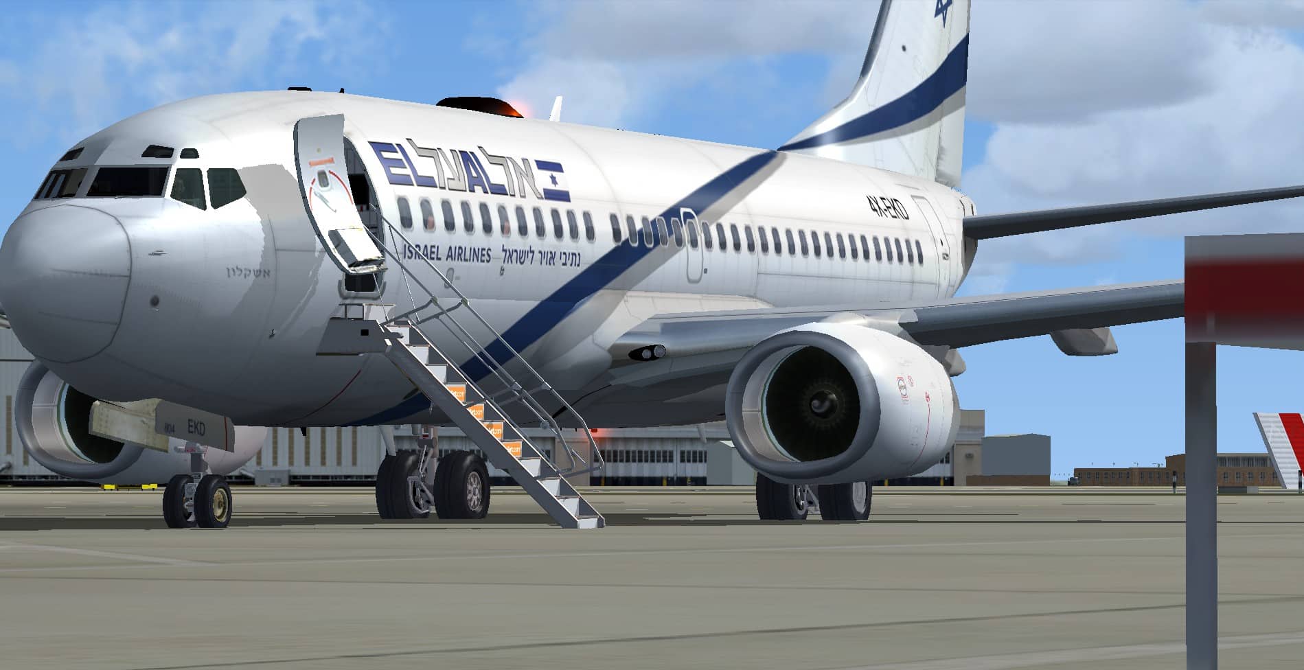 FSX El Al Israeli Airlines Boeing 737-700. Model by Project Opensky/Skyspirit. with advanced VC. Professional textures by Mathieu Vos. For Microsoft Flight Simulator X upgraded to FSX using Alejandro Rojas Lucena/FSND revised Boeing 737-800 VC model. This model includes Working wipers (right mouse click on switch) with rain effect. Switches for LCD Screens, EICAS, PFD, MFT. Autobrake switch. Opening pilots window. Cabin Lights switch. Realistic FMC. Ground Proximity Warning System (GPWS), More Realistic night textures. Includes stairs (shift e 2). Also added jetway (Ctrl J) and there are custom Boeing 737 sounds included for that extra realism. Thank you to Mathieu Vos for his great repaints! Skyspirit/Project Opensky’s wonderful native FSX Boeing 737-700 model included. This file was uploaded as a mess by anon. Fixed up by request. Modified and assembled for FSX by Chris Evans.