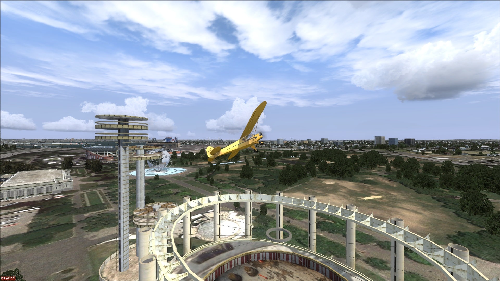 FSX Flushing Meadows. Flushing Meadows Park or Flushing Meadows, is located in the New York City borough of Queens, between the Van Wyck Expressway and Grand Central Parkway and stretching from Flushing Bay, at the southern edge of LaGuardia Airport, to Union Turnpike. I decided to create this add-on for Flushing Meadows Park for all those flying into/out of KLGA. The default scenery is somewhat buggy with flashing objects and misplaced objects and I decided to try my hand at some scenery development. This is my first scenery developed for flight simulator and am quite please with the results. The models for the Unisphere and the 1964-45 World’s Fair Pavillion and Towers are new models created using Google Sketchup. The Tennis Center stadiums,Citi Field, Yankee Stadium, and the Queens Museum of Art are the excellent Google Earth models. Photo Satellite Scenery is LOD 17 (1 m) with hand placed autgen. I also added in the new Yankee Stadium located in the Bronx outside of FLushing Meadows Queens. Currently no night or seasonal textures.